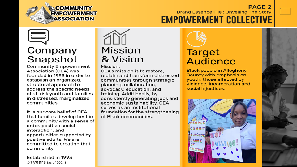 Rooted in decades of grassroots activism, CEA is a leading force for holistic community development in Pittsburgh’s urban neighborhoods. Through youth programming, violence prevention, workforce readiness, and cultural revitalization, CEA empowers Black communities to heal, thrive, and lead sustainable change.